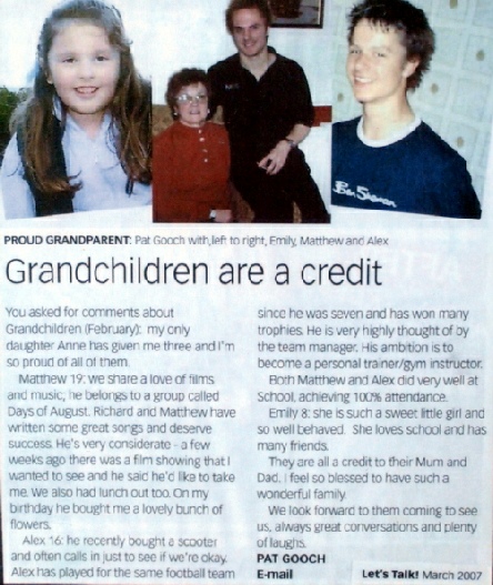 Like most people, I've had my share of ups and downs. But whatever happened, my family have always been the most important part of my life. Mum - Dad - Anne - Son In Law David - Grandsons Matthew and Alex - Granddaughter Emily and of course my dear husband Bill