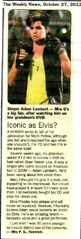 Our Grandson Matthew sings in a rock band called Bad Amplitude. Bill and I love watching them perform. Matthew recently told me of a singer who was on “American Idol” in 2009 - Adam Lambert. His vocal range is unbelievable! Whether singing hard rock or a soft ballad, he’s fantastic! His recent collaboration with Queen was amazing - I defy anyone not to be moved when he sings “Who Wants To Live Forever”. He really did Freddie Mercury proud, performing those great Queen songs.
